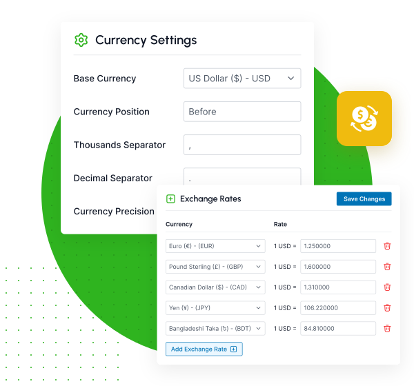 Manage sales and purchases in any currency. Automatically manage conversions for accurate records.