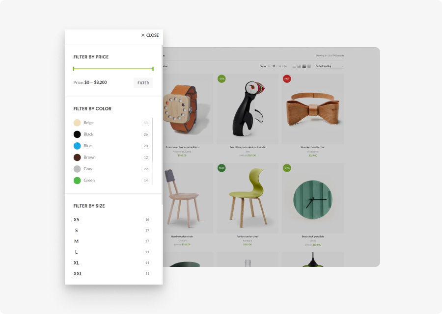 Create a clutter-free Shop page with an off-canvas sidebar containing your filters and widgets.